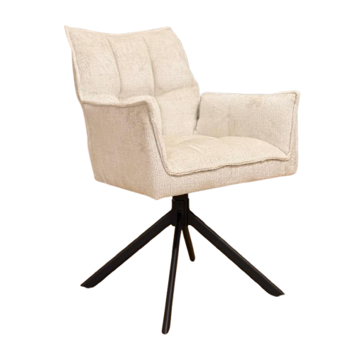 Eetkamerstoel Toby Eetkamerstoel Toby in taupe of beige combineert warmte, comfort en modern design. De zachte, gemêleerde stof voelt aangenaam aan...