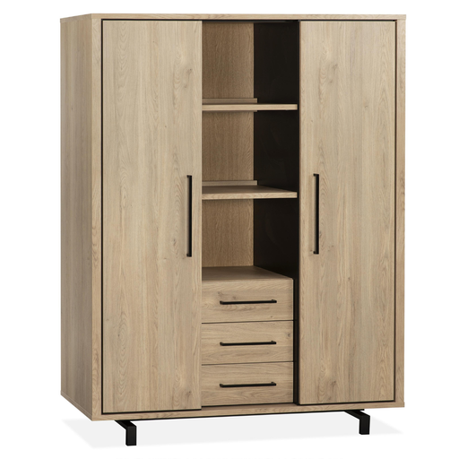 Wandkast Abbey 2 Deuren 3 Lades 3 Open Vakken - Old Oak